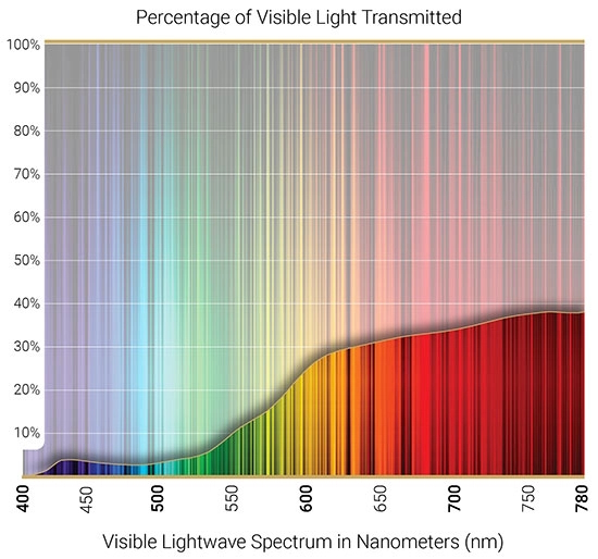 • Estää näkyvän valon 410 nm asti